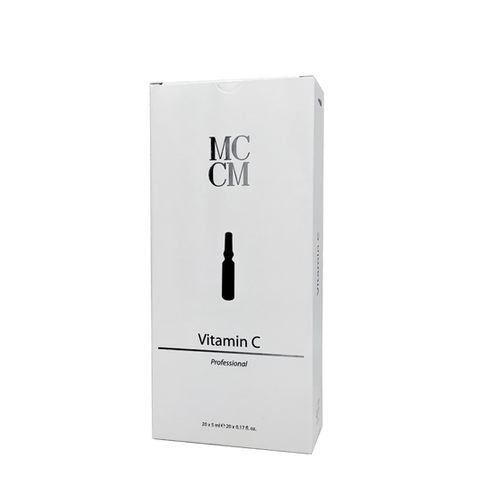 <p>La vitamina C MCCM se presenta en forma de 20 ampollas de 5 mL, especialmente formuladas para su uso en medicina estética. Reconocido por sus virtudes aclaradoras y antioxidantes, este producto es particularmente adecuado para tratar los signos del envejecimiento y las lesiones pigmentarias. La vitamina C estimula la síntesis de colágeno, esencial para mantener la firmeza y elasticidad de la piel. También juega un papel fundamental en la disminución de la producción de melanina, responsable de las manchas marrones causadas por el envejecimiento, el tabaco, los rayos UV y la contaminación. Este tratamiento es adecuado para todo tipo de piel, ayudando a corregir un tono irregular y a reforzar la estructura cutánea. Además de sus acciones sobre los signos de la edad, la Vitamina C MCCM neutraliza los radicales libres, limitando así el estrés oxidativo que perjudica la integridad de la piel.</p>
