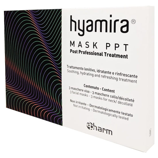 De Hyamira Mask PPT is een onmisbare oplossing voor optimale hydratatie en een stralende teint. Dit pakket bevat 6 maskers (3 voor het gezicht en 3 voor decolleté), verrijkt met hyaluronzuur en kalmerende extracten die uw huid diepgaand revitaliseren, waardoor deze zachter en stralender aanvoelt. Perfect voor thuisgebruik of na esthetische behandelingen, dit masker is een echte bondgenoot voor uw schoonheidsroutine.