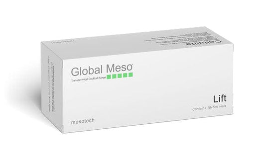 <p>Le Global Meso Lift (10x5ml) est un soin de mésothérapie conçu pour apporter jeunesse et tonus à la peau en agissant sur les signes visibles du vieillissement. Sa formule concentrée associe le DMAE, qui stimule la fermeté de la peau, à un mélange de 21 acides aminés essentiels, permettant de revigorer l’aspect général de l’épiderme. Le produit s’applique par un professionnel qualifié, soit à l’aide d’un dermapen, soit à l’aide d’un dermaroller, ce qui garantit une pénétration optimale des actifs dans les couches profondes de la peau. Les zones cibles incluent le visage, le cou, le décolleté, ainsi que le dos des mains, chacune étant sujette à des signes de détérioration cutanée. En suivant un protocole d'application rigoureux, qui inclut des étapes comme le nettoyage de la peau, l'application de la mousse neutralisante et l'hydratation post-soin, les utilisateurs peuvent s'attendre à des résultats visibles tels qu’un teint éclatant et une texture de peau améliorée. Une boîte contient 10 fioles de 5ml, représentant une option pratique et efficace pour les soins rajeunissants.</p>